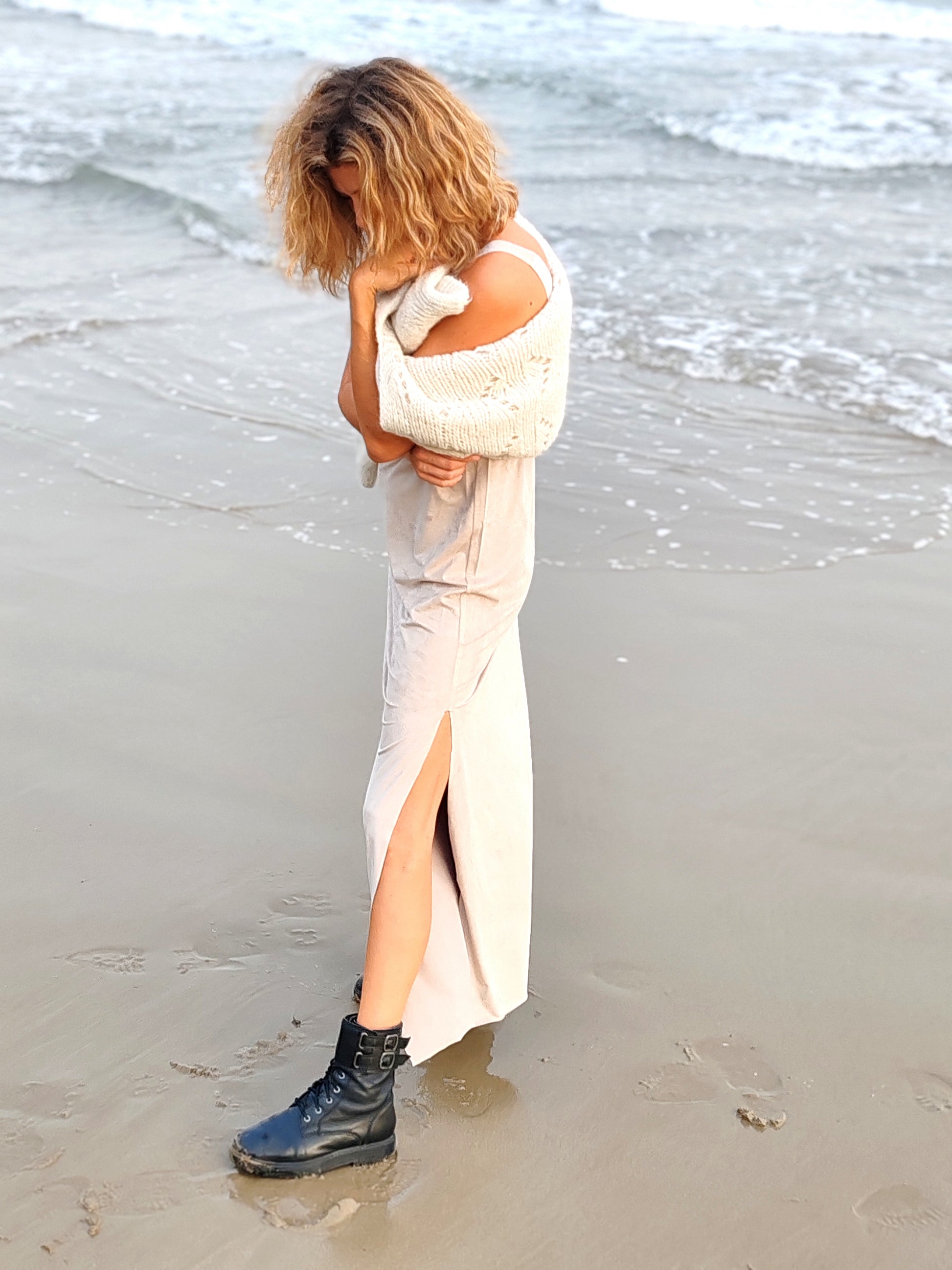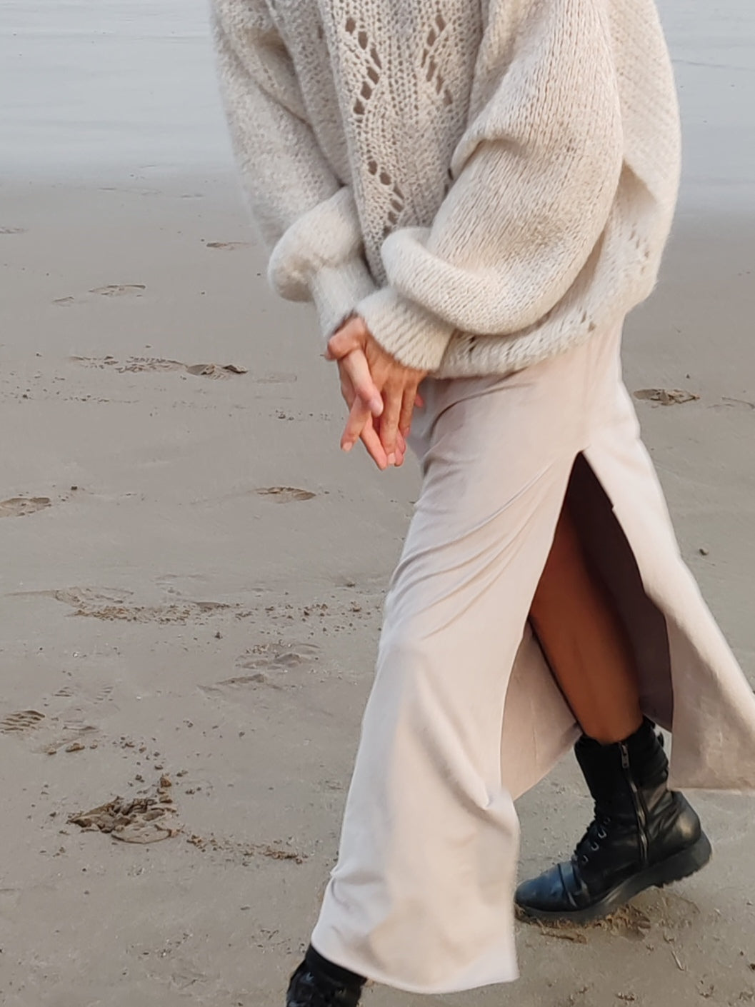 Vestido de ante vegano color arena. Muy cómodo y un poco elástico.